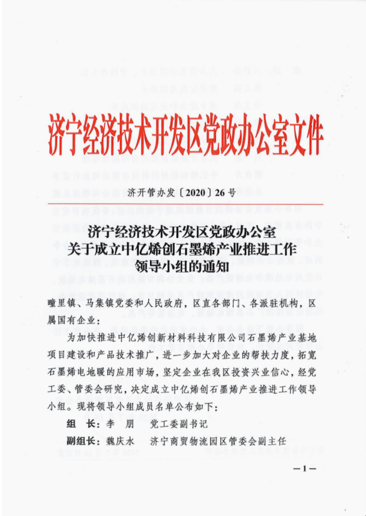 经开区政府成立中亿烯创石墨烯产业推进小组